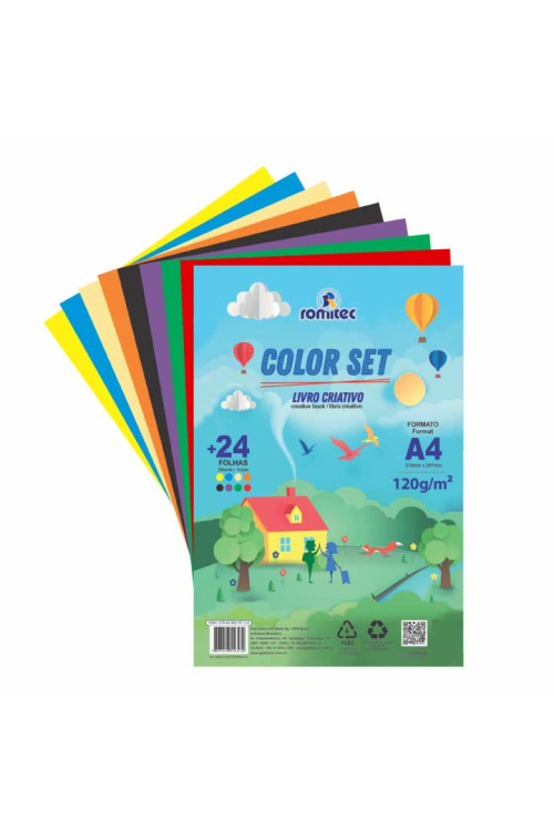 Descrição complementar - O Livro Criativo Color Set ROMITEC é um livro pedagógico com atividades como colagem, dobradura e recorte, pode ser usado em atividades escolares ou mesmo como entretenimento. Além do livro, o produto acompanha 24 folhas coloridas. Produto 100% reciclável. BAIXE O DOWNLOAD DE AMOSTRA DO LIVRO! APROVEITE!