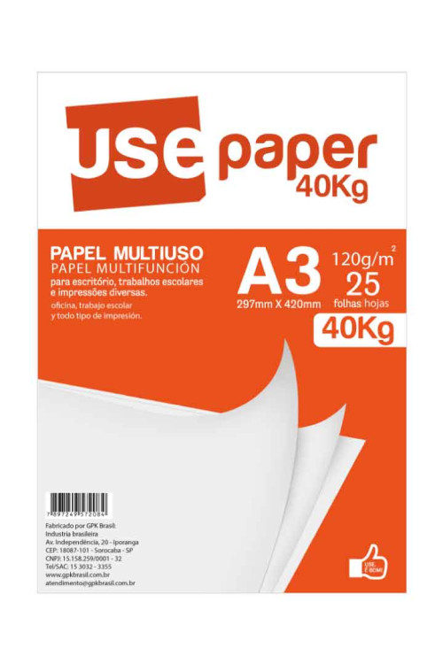 PAPEL SULFITE 120 GSM (40 KG), PCT C/25 FLS, FORMATO A3, BRANCO | GPK BRASIL