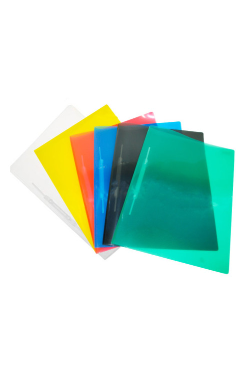 PASTA PP CANALETA CORES SORTIDAS (FUMÊ, CRISTAL E AZUL) FORMATO A4