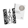 Especificações - LIVRO CAPA DURA, ESPIRAL, 13 FOLHAS DE TEORIA MUSICAL, 5 FOLHAS ANOTAÇÕES, 70 FOLHAS COM PENTAGRAMAS (12 PENTAGRAMAS POR PÁG), PAPEL 63 GSM, Impressão OFFSET em alta definição.
