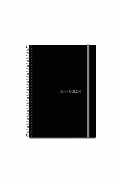 CADERNO COLEGIAL SLIM COLOR, 80 FLS, ESPIRALADO, CAPA EM PP, FECHAMENTO C/ELÁSTICO, PRETO