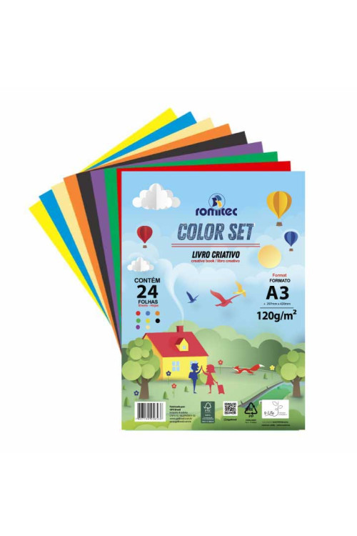 Descrição complementar - O Livro Criativo Color Set ROMITEC é um livro pedagógico com atividades como colagem, dobradura e recorte, pode ser usado em atividades escolares ou mesmo como entretenimento. Além do livro, o produto acompanha 24 folhas coloridas. Produto 100% reciclável. BAIXE O DOWNLOAD DE AMOSTRA DO LIVRO! APROVEITE!