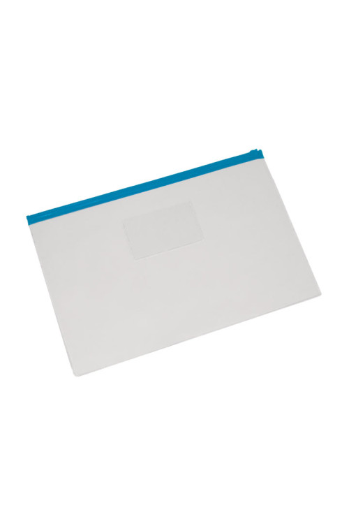 PASTA ZIP EM PVC CRISTAL GRANDE COM ZIPER AZUL (360MM X 244MM) | GPK BRASIL