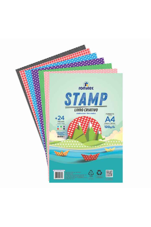 Descrição - LIVRO DE ATIVIDADES CRIATIVO STAMP 120 GSM, FORMATO A4