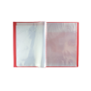 Descrição - PASTA CATÁLOGO CLEAR PLASTIC FOLDER PP C/50 SACOS, VERMELHA, FORMATO A4