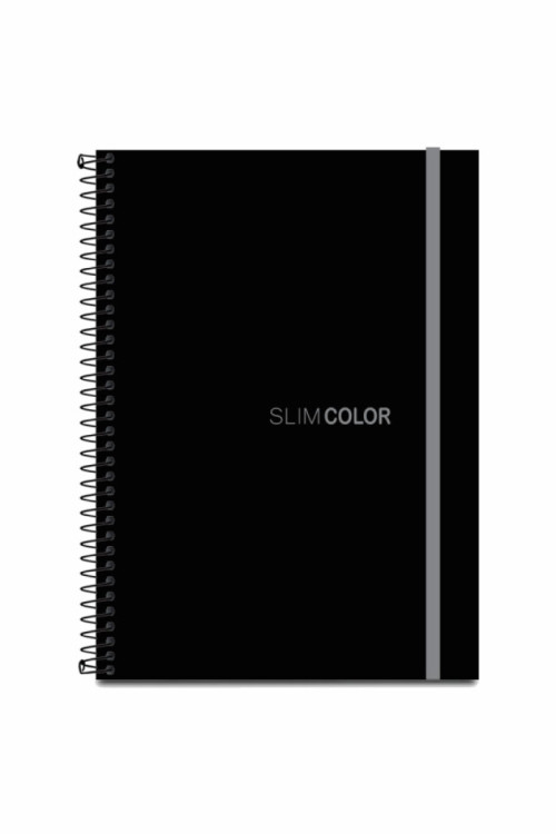 CADERNO COLEGIAL SLIM COLOR, 80 FLS, ESPIRALADO, CAPA EM PP, FECHAMENTO C/ELÁSTICO, PRETO