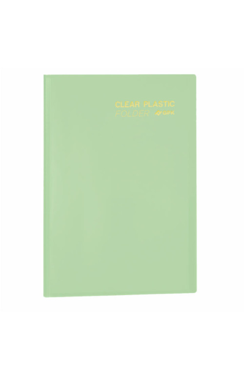 PASTA CATÁLOGO CLEAR PLASTIC FOLDER TOM PASTEL PP, C/20 SACOS, VERDE CHÁ, FORMATO A4 | GPK BRASIL